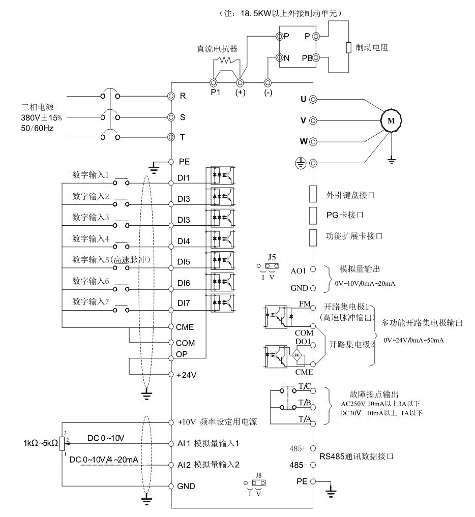 4.多種速度控制方式:模擬量輸入0-5VDC,0-10VDC,0/4-20mA;面板電位器調(diào)速(更改參數(shù)可設(shè)置上下按鍵調(diào)速);外接電位器調(diào)速;可通過485通訊調(diào)速。